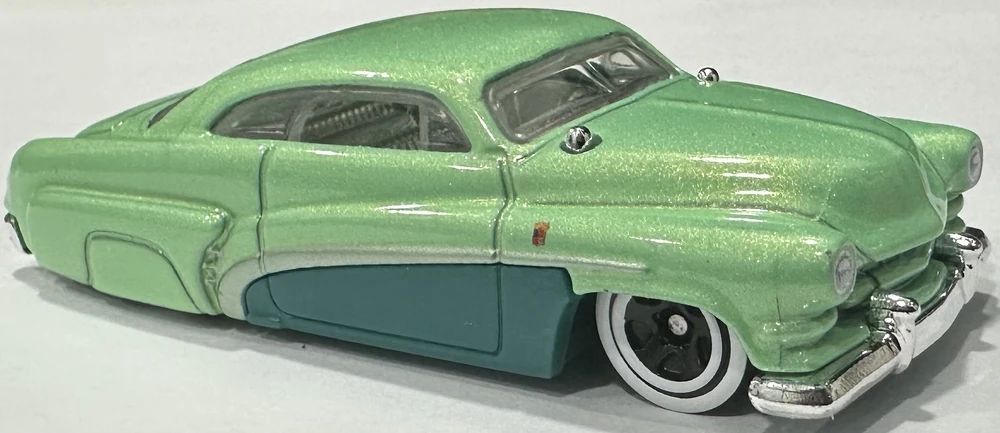 Hot Wheels has designed the Hirohata Merc in the past, being named the '51 Merc in the 100% Hot Wheels line, based on their '49 Merc tooling. Larry Wood loaned designer Brendon Vetuskey the hand-sculpted resin pattern from the previous development, which was 3D-scanned for development. Minor tweaks were made to improve the details.